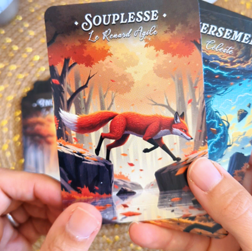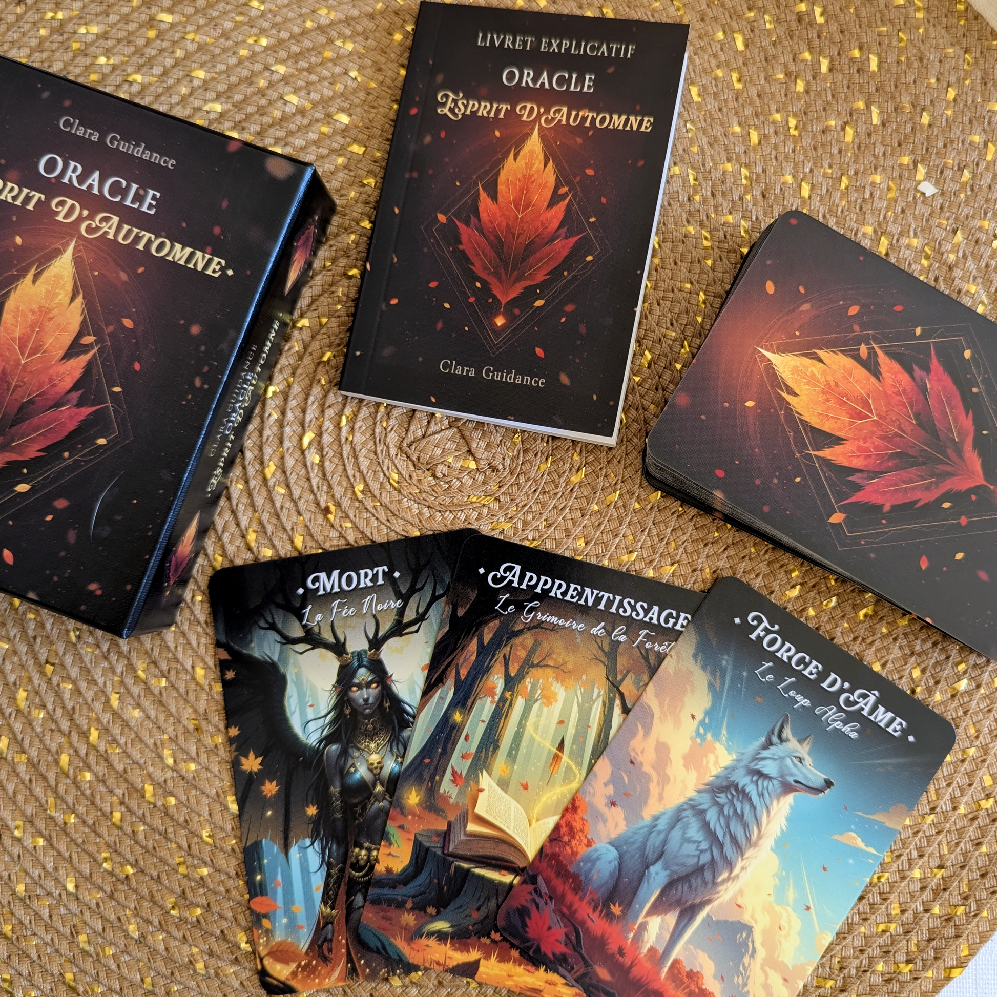 Découvrez l'Oracle Esprit d'Automne, un jeu de 51 cartes magnifiquement illustrées célébrant la magie et la sagesse de la saison automnale. Chaque carte est une fenêtre ouverte sur un monde enchanteur peuplé d'êtres féeriques, d'animaux totémiques et de symboles ancestraux.
